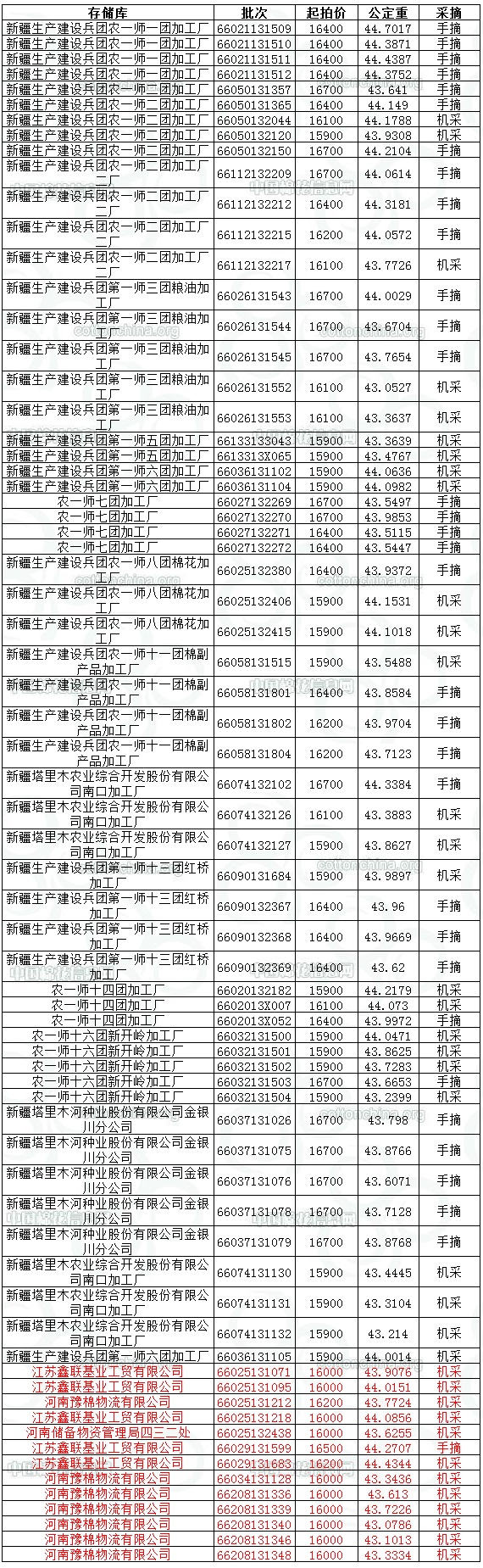 各交易商: 定于8月13日投放新疆兵團競賣棉花3068.0533噸,其中內(nèi)地庫占568.3038噸。相關(guān)批次公檢數(shù)據(jù)見附件。具體庫點如下: