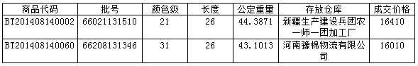 錦橋紡織網—資訊頻道> 棉花信息> 拋儲>正文 8月14日兵團棉花競賣成交結果