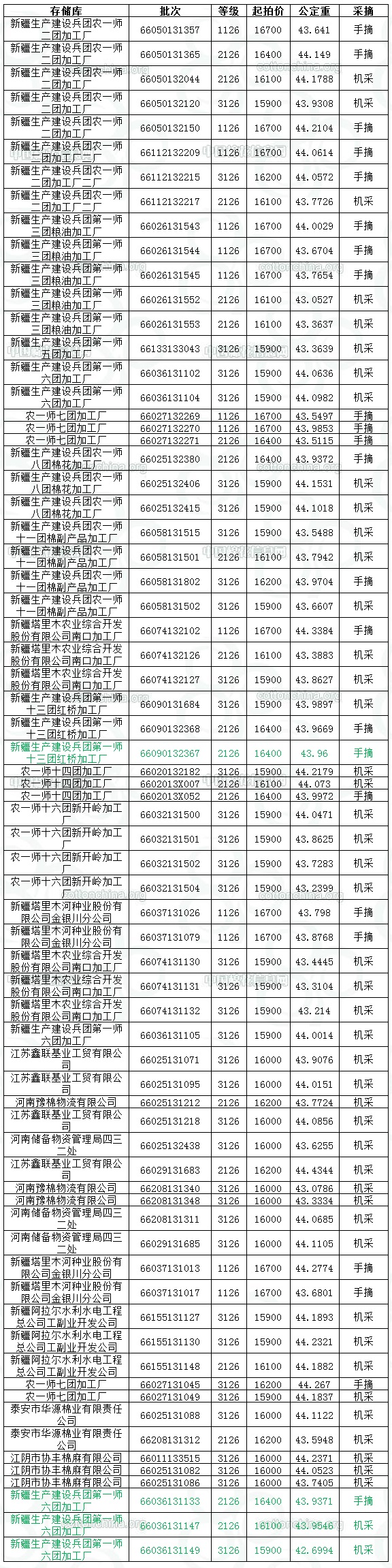 各交易商: 定于8月18日投放新疆兵團(tuán)競(jìng)賣棉花3069.6891噸,其中內(nèi)地庫占658.1685噸。相關(guān)批次公檢數(shù)據(jù)見附件。具體庫點(diǎn)如下: