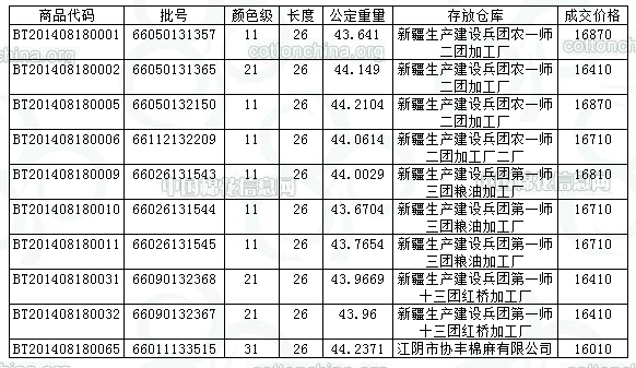 8月18日兵團(tuán)棉花競賣成交結(jié)果