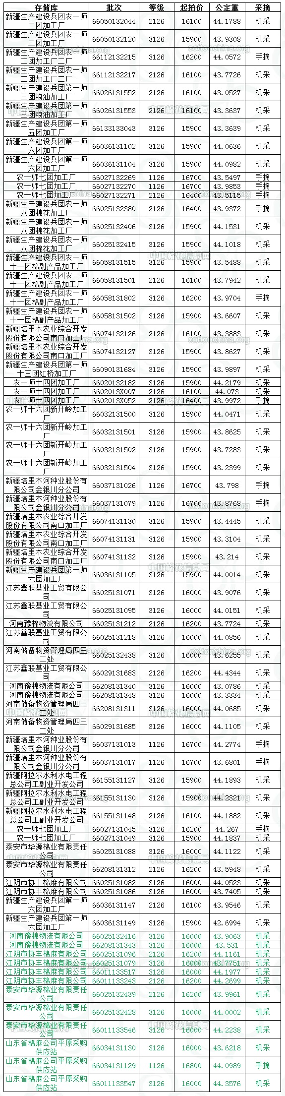 各交易商: 定于8月19日投放新疆兵團(tuán)競(jìng)賣棉花3069.8436噸,其中內(nèi)地庫(kù)占1228.6799噸。相關(guān)批次公檢數(shù)據(jù)見附件。具體庫(kù)點(diǎn)如下: