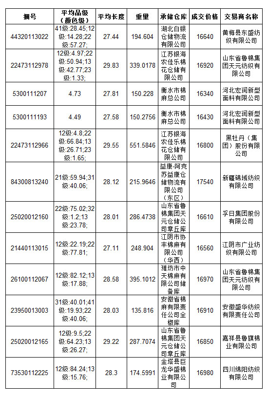 8月18日儲備棉投放成交結(jié)果