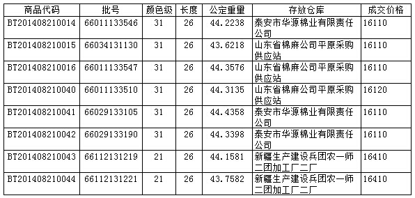 8月21日兵團(tuán)棉花競賣成交結(jié)果
