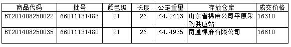 8月25日兵團(tuán)棉花競(jìng)賣(mài)成交結(jié)果