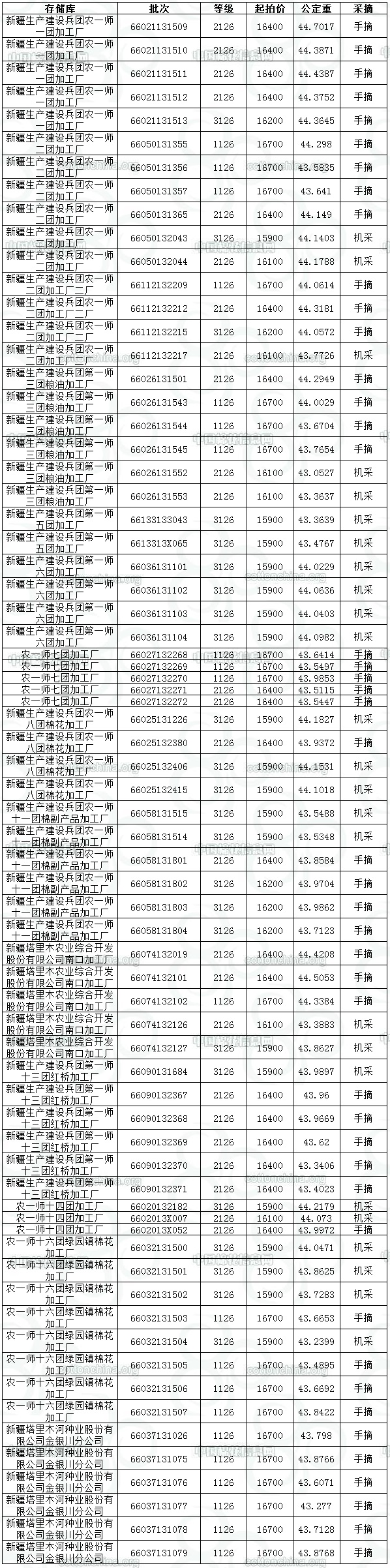 定于8月8日投放新疆兵團(tuán)競賣棉花3071.6764噸,相關(guān)批次公檢數(shù)據(jù)見附件。具體庫點如下: