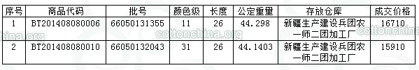 8月8日兵團(tuán)棉花競(jìng)賣(mài)成交結(jié)果