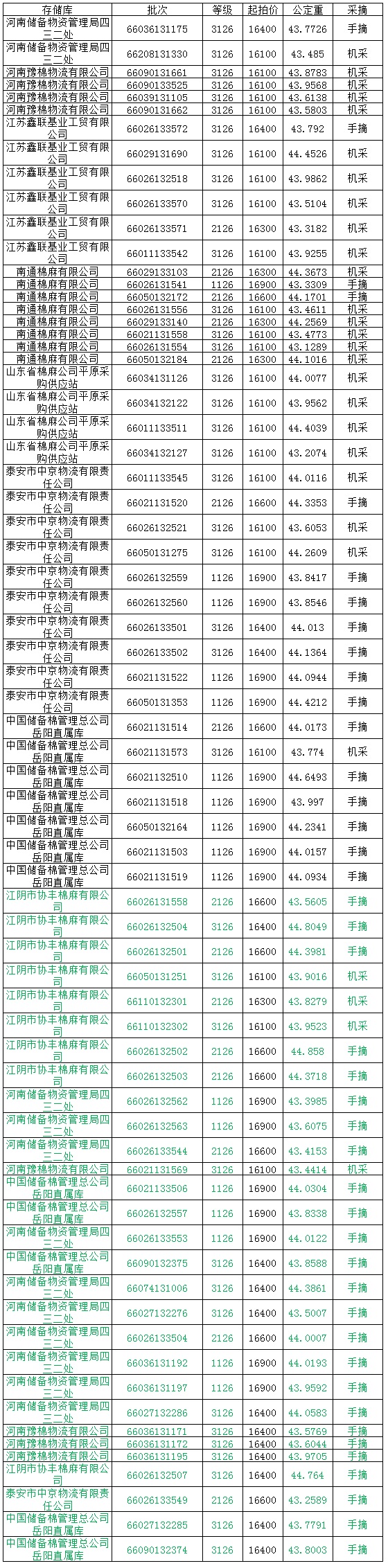 各交易商: 定于9月11日投放新疆兵團競賣棉花3074.4476噸,其中內(nèi)地庫占3074.4476噸。相關(guān)批次公檢數(shù)據(jù)見附件。具體庫點如下: