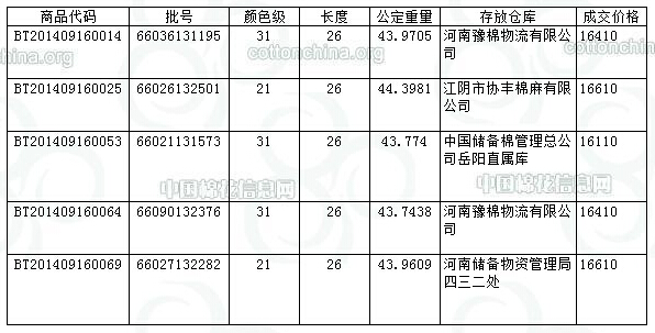 錦橋紡織網—資訊頻道> 棉花信息> 拋儲>正文 9月16日兵團棉花競賣成交結果