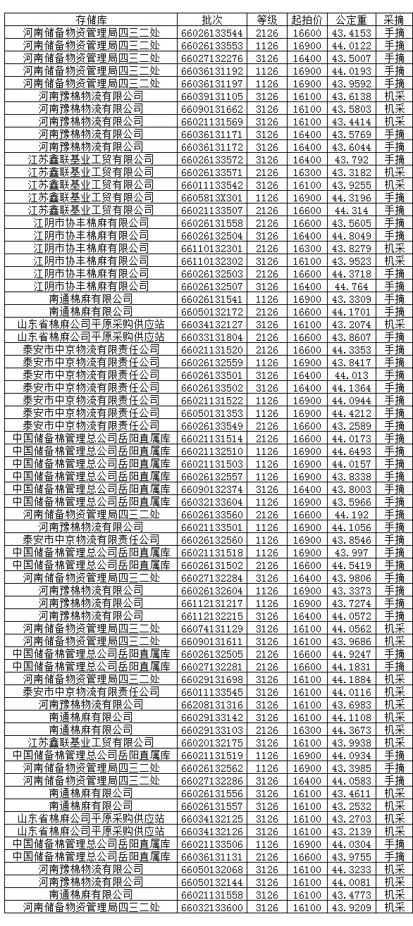 各交易商: 定于9月23日投放新疆兵團(tuán)競(jìng)賣(mài)棉花3074.0378噸,存儲(chǔ)庫(kù)全為內(nèi)地庫(kù)區(qū)。相關(guān)批次公檢數(shù)據(jù)見(jiàn)附件。具體庫(kù)點(diǎn)如下: