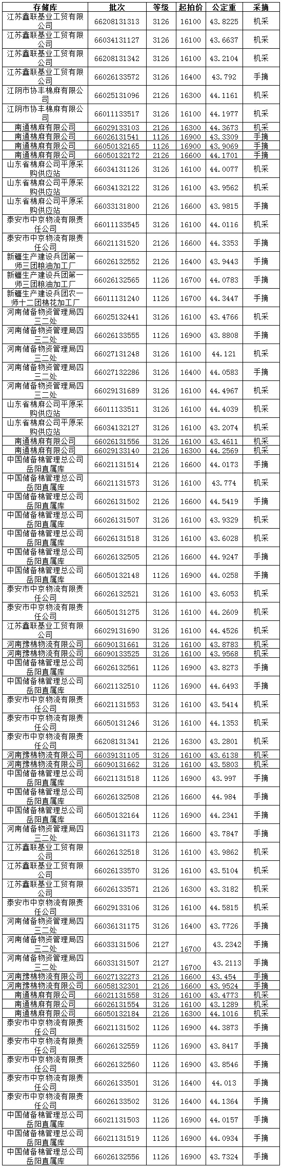 各交易商: 定于9月4日投放新疆兵團(tuán)競(jìng)賣棉花3075.0036噸,其中內(nèi)地庫(kù)占2942.6363噸。相關(guān)批次公檢數(shù)據(jù)見(jiàn)附件。具體庫(kù)點(diǎn)如下: 轉(zhuǎn)載本網(wǎng)專稿請(qǐng)注明:"本文轉(zhuǎn)自錦橋紡織網(wǎng)"。 更多紡織專業(yè)資訊,關(guān)注錦橋紡織網(wǎng)微信公眾號(hào)。微信搜:錦橋紡織網(wǎng)