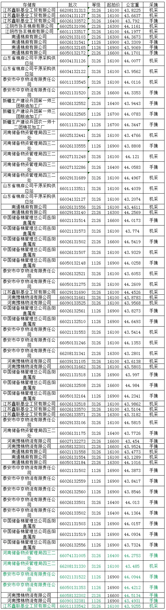 各交易商: 定于9月5日投放新疆兵團競賣棉花3077.2619噸,其中內(nèi)地庫占2944.8946噸。相關(guān)批次公檢數(shù)據(jù)見附件。具體庫點如下: