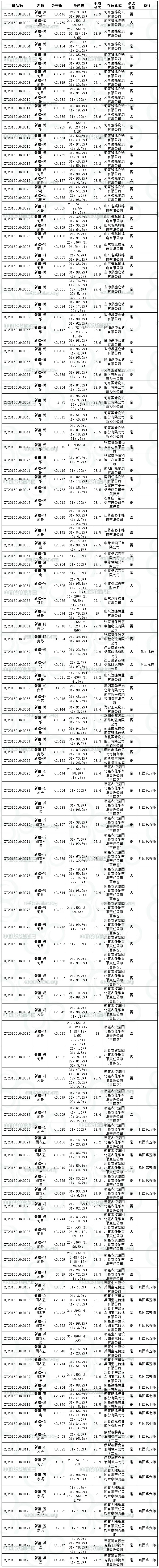 各交易商: 全國棉花交易市場定于1月4日上市新疆棉競賣資源5326.513噸,其中新疆庫區(qū)資源2333.546噸(手摘棉859.71噸,最低起報價12600元/噸;機采棉1473.836噸,最低起報價13100元/噸),內含兵團棉1473.836噸(最低起報價13100元/噸);內地庫區(qū)資源2992.967噸(手摘棉1473.707噸,最低起報價14100元/噸;機采棉1519.26噸,最低起報價13600元/噸),內含兵團棉86.079噸,(最低起報價14650元/噸)。相關詳細數據見附件。具體庫點如下: