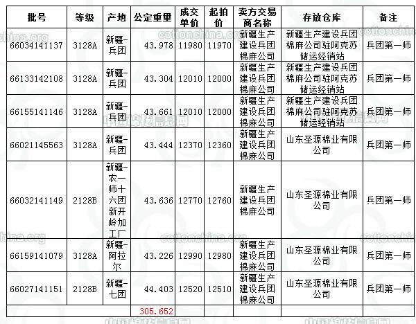 10月13日兵團(tuán)棉競賣交易成交結(jié)果