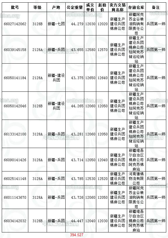 10月16日兵團棉競賣交易成交結(jié)果