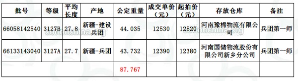 10月23日兵團(tuán)棉競(jìng)賣(mài)交易成交結(jié)果