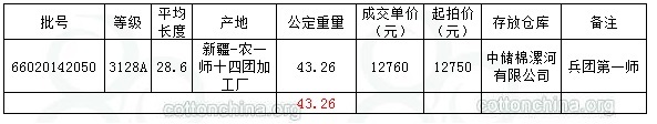10月26日新疆棉競(jìng)賣交易兵團(tuán)專場(chǎng)推出資源量為11772.42噸,(全部為兵團(tuán)第一師資源),實(shí)際成交43.26噸,成交率0.37%,成交價(jià)12760元/噸,平均長(zhǎng)度28.6。中國(guó)棉花信息網(wǎng)統(tǒng)計(jì),截至10月26日,兵團(tuán)已累計(jì)成交資源42905.605噸。