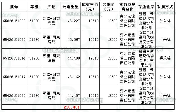 當日成交資源均為2015年度新花資源(手摘棉),共計5批;均加價10元成交。