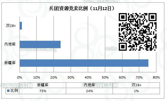 11月12日新疆生產(chǎn)建設(shè)兵團(tuán)競賣專場推出棉花9897.334噸,全部第一師資源,最低起報價12060元/噸。新疆庫占7461.411噸,內(nèi)地庫占2435.923噸。當(dāng)日雙28以上資源(斷裂比強(qiáng)度28+,平均長度28+)132.165噸。