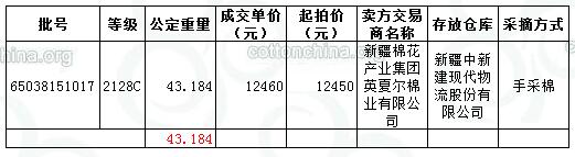 當(dāng)日成交資源為2015年度新花資源(手摘棉)1批;加價(jià)10元成交。