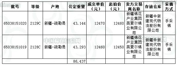 當(dāng)日成交資源為2015年度新花資源(手摘棉)2批;加價(jià)10元成交。