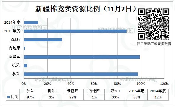 全國棉花交易市場定于11月2日上市新疆棉競賣資源4970.91噸。其中新疆庫區(qū)資源4926.677噸,內(nèi)地庫區(qū)資源44.233噸。當(dāng)日雙28以上資源(斷裂比強(qiáng)度28+,平均長度28+)1619.078噸。當(dāng)日新增10批2015年度資源(其中有3批資源在雙29+),存放在新疆庫,均為手摘棉,最低起報(bào)價(jià)12300元/噸。