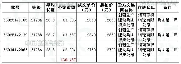 當日成交資源3批均在內(nèi)地庫(河南豫棉物流有限公司),均加價10元/噸成交。