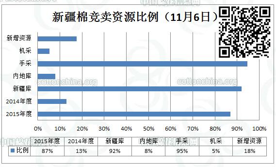 全國棉花交易市場定于11月6日上市新疆棉競賣資源4907.31噸。其中新疆庫區(qū)資源4519.376噸,內(nèi)地庫區(qū)資源387.655噸。當(dāng)日庫爾勒倉庫新增5批雙28手摘資源,有2批性價比較高的雙29資源,存放在中新建倉庫。