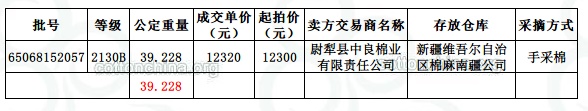 12月16日新疆棉南疆公司專場交易成交結(jié)果