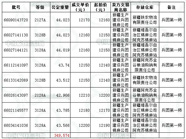 12月22日兵團(tuán)棉競賣交易成交結(jié)果