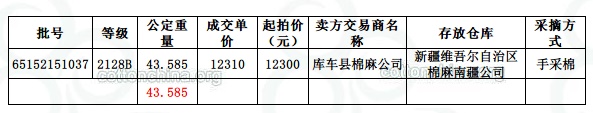 12月25日新疆棉南疆公司專場交易成交結(jié)果