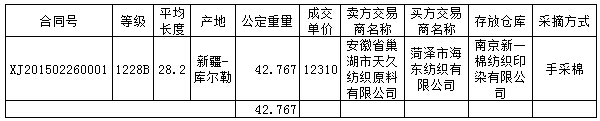 2月26日新疆棉競賣交易成交結(jié)果
