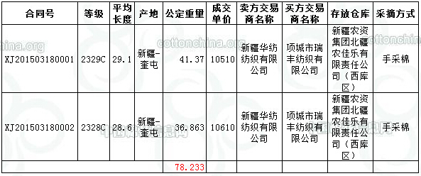 3月18日新疆棉競(jìng)賣(mài)交易成交結(jié)果