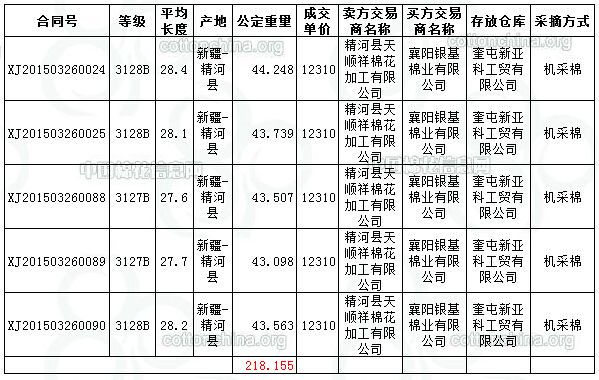 新疆棉競賣交易評述(3.26):成交218噸 成交比例3.54%