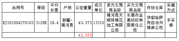 新疆棉競賣交易評述(4.27):成交43噸手摘棉