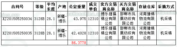 5月25日新疆棉競賣交易成交結(jié)果