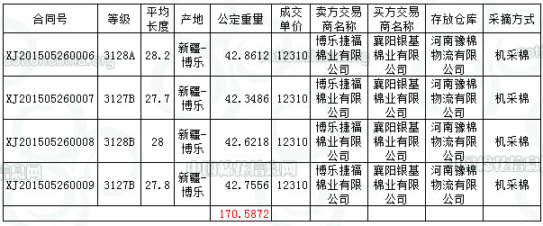 5月26日新疆棉競賣交易成交結果