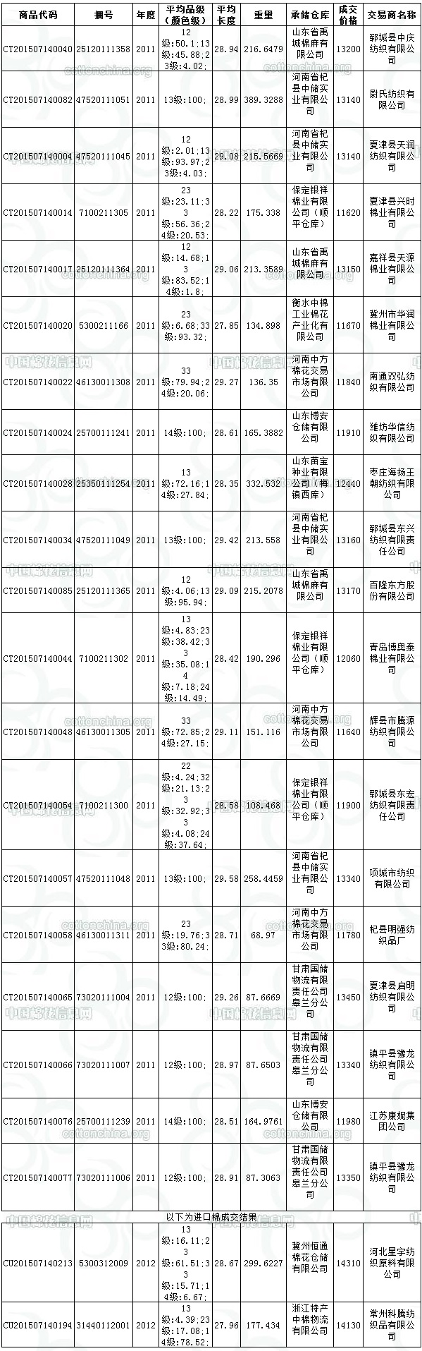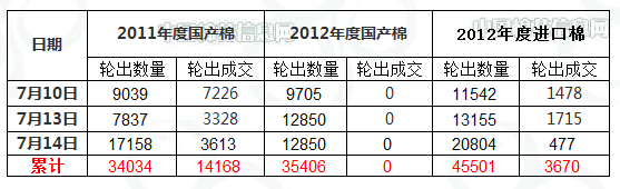 7月14日進(jìn)口棉受冷落 成交比例下降