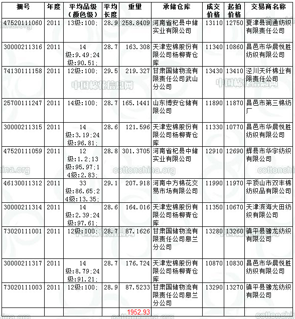 二、2011年度國產(chǎn)棉成交最高加價680元/噸(捆號;30000211314)。