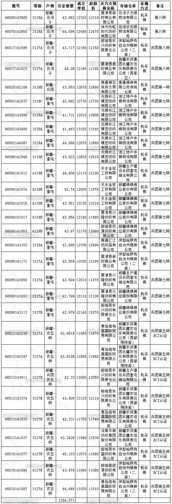 ——新疆生產建設兵團競賣專場成交結果