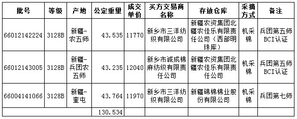 7月28日兵團棉競賣交易成交結(jié)果