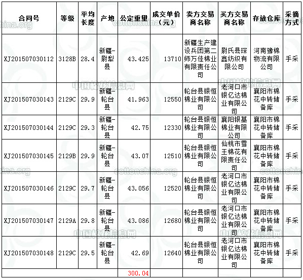 7月3日新疆棉競(jìng)賣(mài)交易成交結(jié)果