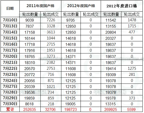 7月30日儲(chǔ)備棉輪出數(shù)量為50937.8953噸,實(shí)際成交217.5271噸,成交比例0.43%。參與涉及競(jìng)買(mǎi)成功的企業(yè)共計(jì)1家。據(jù)中國(guó)棉花信息網(wǎng)統(tǒng)計(jì),截至7月30日儲(chǔ)備棉輪出累計(jì)成交38304.9157噸,成交比例5.24%。