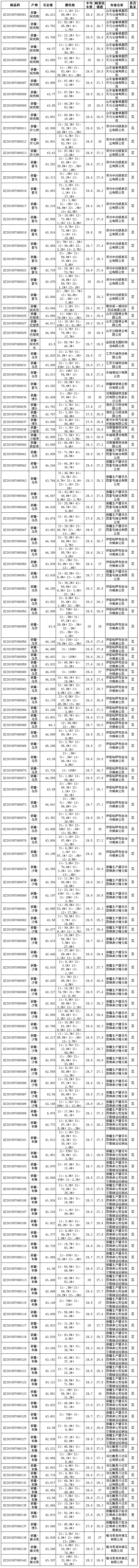 全國棉花交易市場定于7月6日上市新疆棉競賣資源6003.882噸,其中新疆庫區(qū)資源3974.163噸(手摘棉3888.144噸,最低起報價13050元/噸;機采棉86.019噸,最低起報價12300元/噸)。內(nèi)地庫區(qū)資源2029.719噸,最低起報價13200元/噸。當(dāng)日雙28以上資源(斷裂比強度28+,平均長度28+)2066.965噸(新疆庫占1068.5噸,內(nèi)地庫占998.465噸),最低起報價13200元/噸,均為手摘棉。