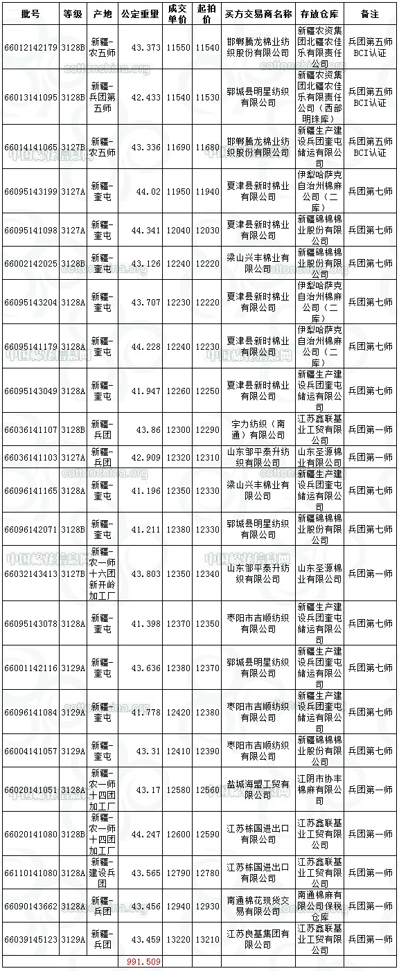 8月10日兵團(tuán)棉競(jìng)賣交易成交結(jié)果