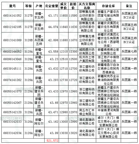 ——新疆生產(chǎn)建設(shè)兵團競賣專場成交結(jié)果