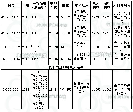8月12日儲(chǔ)備輪出成交1672.4121噸(11年度國產(chǎn)棉935.1598噸,12年度進(jìn)口棉737.2523噸)。