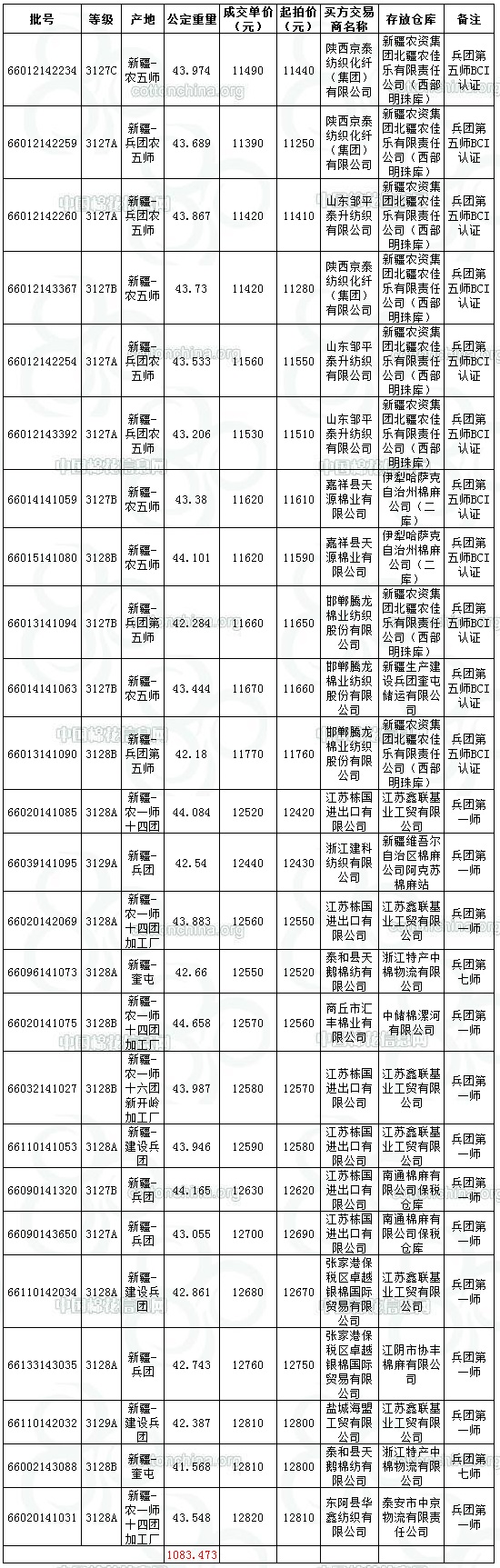 兵團第七師成交84.228噸,占當日該師上市資源量的3.63%。