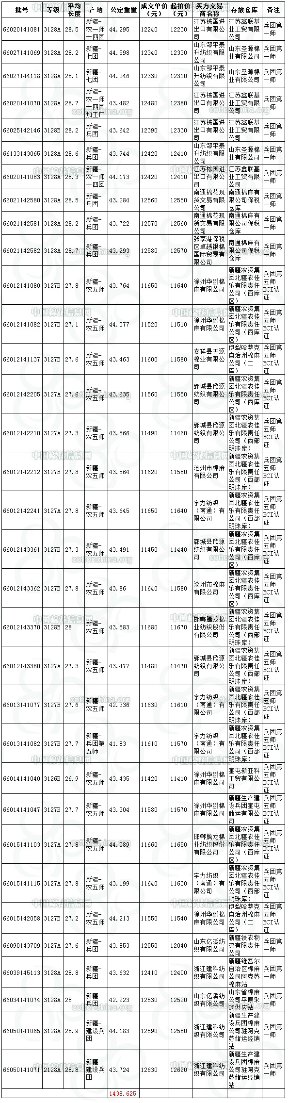8月18日兵團(tuán)棉競(jìng)賣交易成交結(jié)果