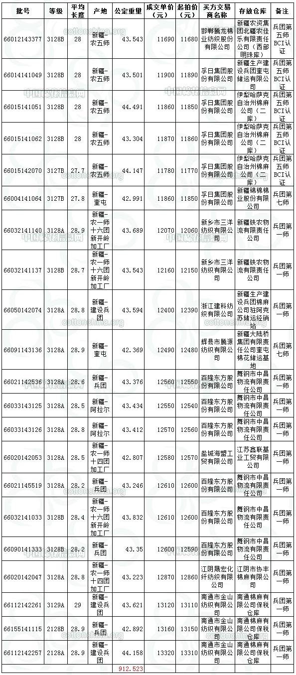 8月19日兵團(tuán)棉競賣交易成交結(jié)果