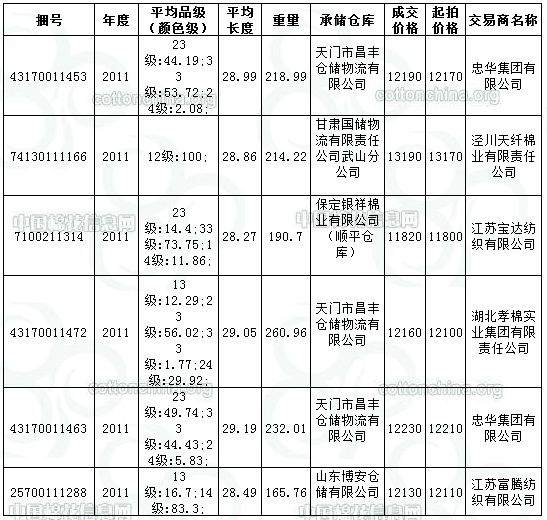 8月21日儲(chǔ)備輪出成交1282.6513噸,全部為2011年度國(guó)產(chǎn)棉。